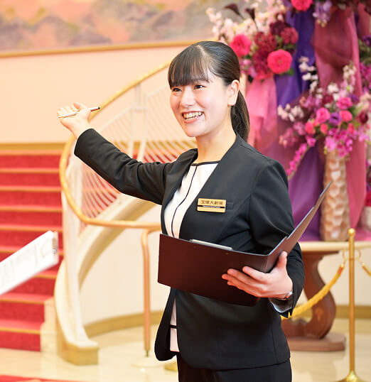事務営業職では、主に3職類の業務内容があります。宝塚歌劇の運営・チケットセールスや当社が所有する劇場の建築設備の適正な維持管理やリニューアルに関わる業務を行う「創遊事業本部」、当社保有の土地の利活用・沿線のまちづくりに関わる「沿線まちづくり推進部」、会社のコーポレートを担い従業員の縁の下の力持ちとして働く「スタッフ部門」があります。