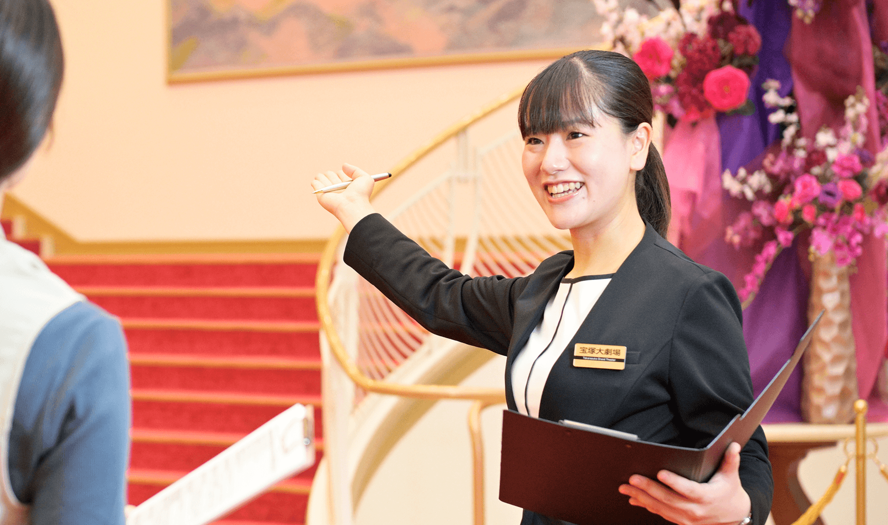 ときにはお客様のご要望にお応えするために、私たちが宝塚歌劇団との架け橋になることも。苦労することもありますが、お客様の反応を間近で見ることができるので、人を喜ばせることが好きな人はきっとやりがいをもって働けるはずです!