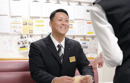 お客様からのご要望にスムーズにお応えできるよう、日々業務知識の向上に努めています。車いすをご利用のお客様や白杖をお持ちのお客様のサポートも行います。