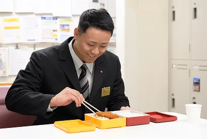 交代で休憩をとります。社員用のお弁当や、購入したものなどを食べます。気分転換に近くの飲食店へ出かけることも。